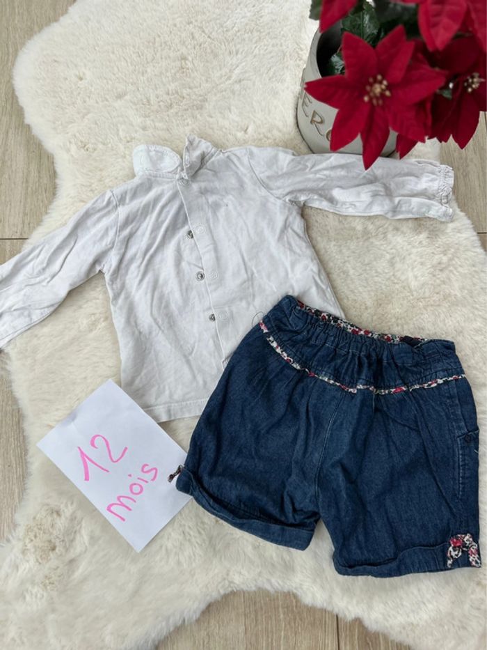 Jolie ensemble de la marque sergent major • son haut blanc avec petit col • son short bleu avec petite bande fleuri En très bon état #charlinelolfille9mois N’hésitez pas si vous avez des questions