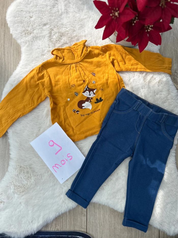 Jolie ensemble pour les jours où il fais un peu plus frais • son haut jaune avec un petit renard dessus •son bas jegging bleu Marque Kiabi Taille 9 mois En très bon état #charlinelolfille9mois N’hésitez pas si vous avez des questions