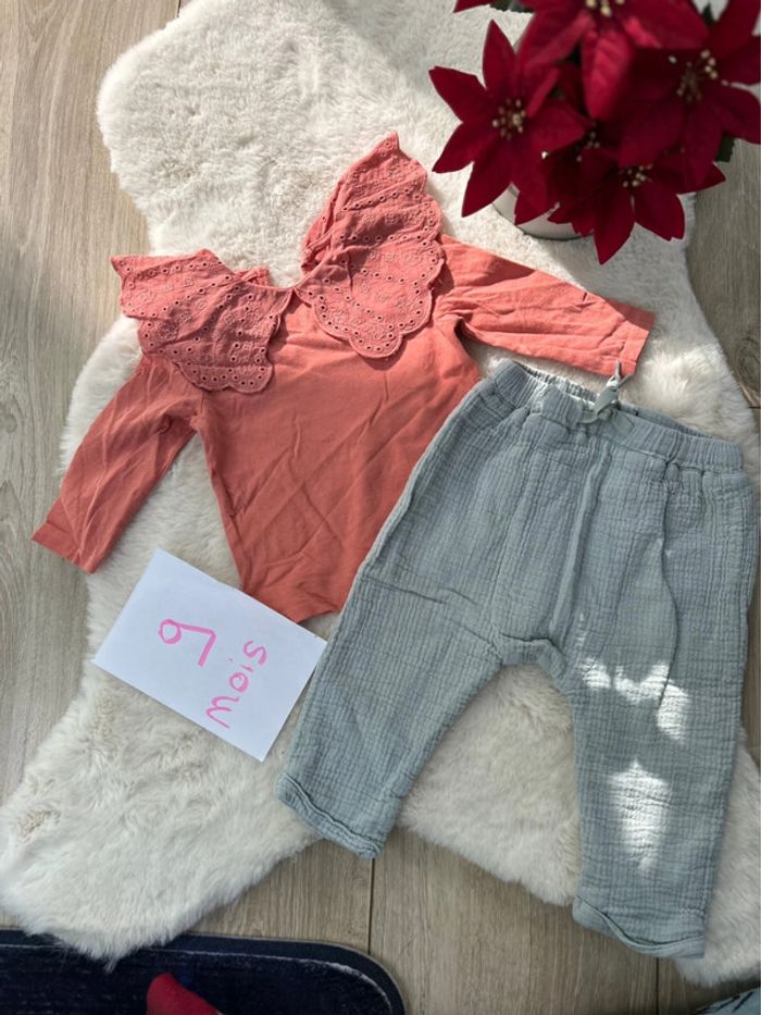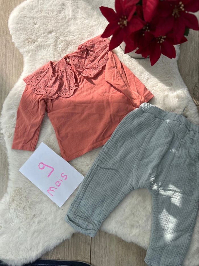 Jolie ensemble de printemps • son haut rose saumon avec détaillé en dentelle sur le col • son pantalon vert pastel ajustable Marque kiabi En très bon état #charlinelolfille9mois N’hésitez pas si vous avez besoin