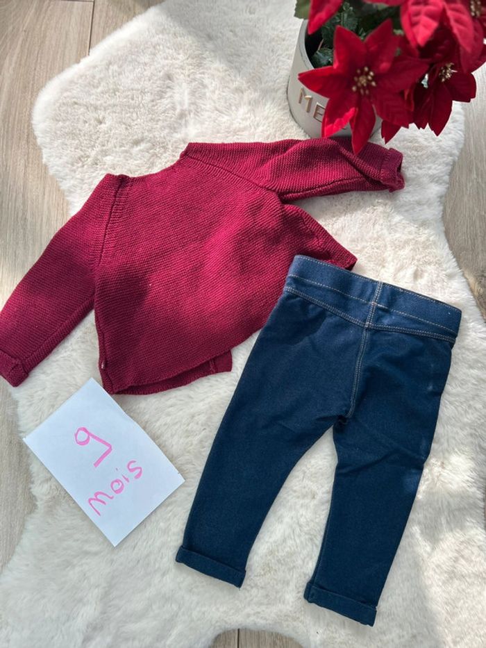 Jolie ensemble avec •son petit gilet rose obaïbi •son pantalon jegging Taille 9 mois En très bon état #charlinelolfille9mois N’hésitez pas si vous avez des questions