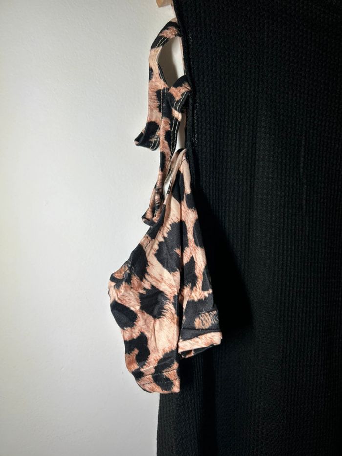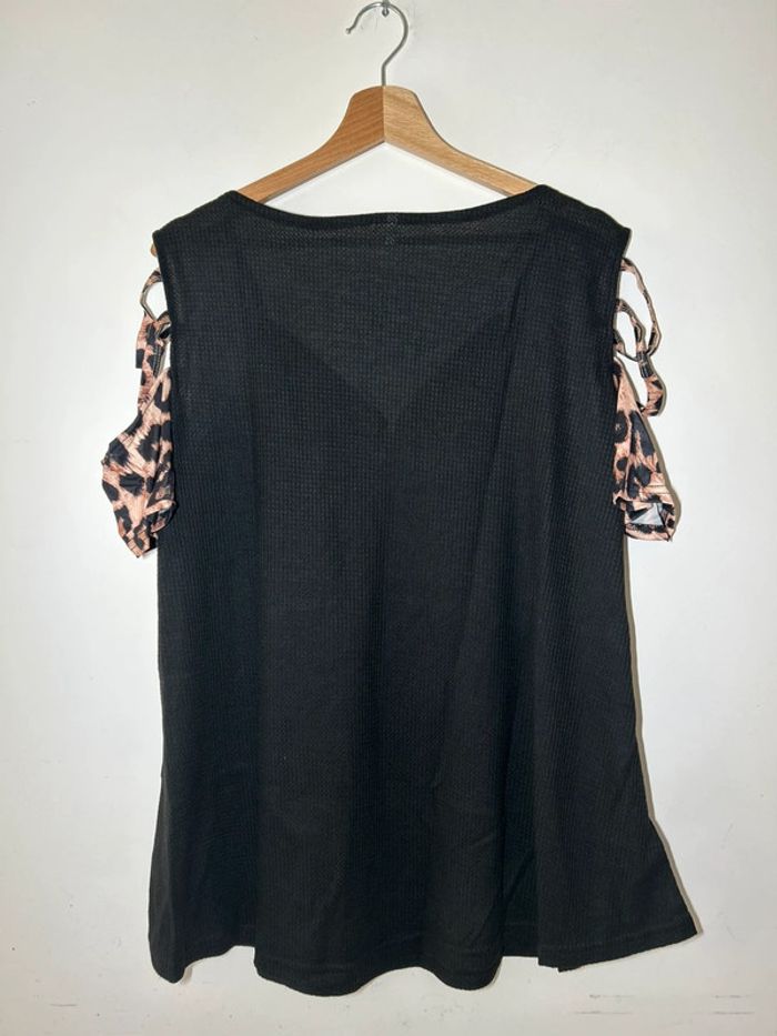 Top noir 2XL avec épaules léopard et zip tendance - photo numéro 1