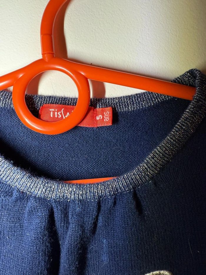• Marque : Tissaia • Taille : 5 ans • Couleur : Bleu marine • Détails : Motif nœud en paillettes argentées, cordon ajustable à la taille, bordures argentées. • État : Très bon état, peu portée. Parfaite pour une tenue élégante et confortable Envoi : Disponible via Mondial Relay ou remise en main propre. N’hésitez pas à me contacter pour plus d’informations !