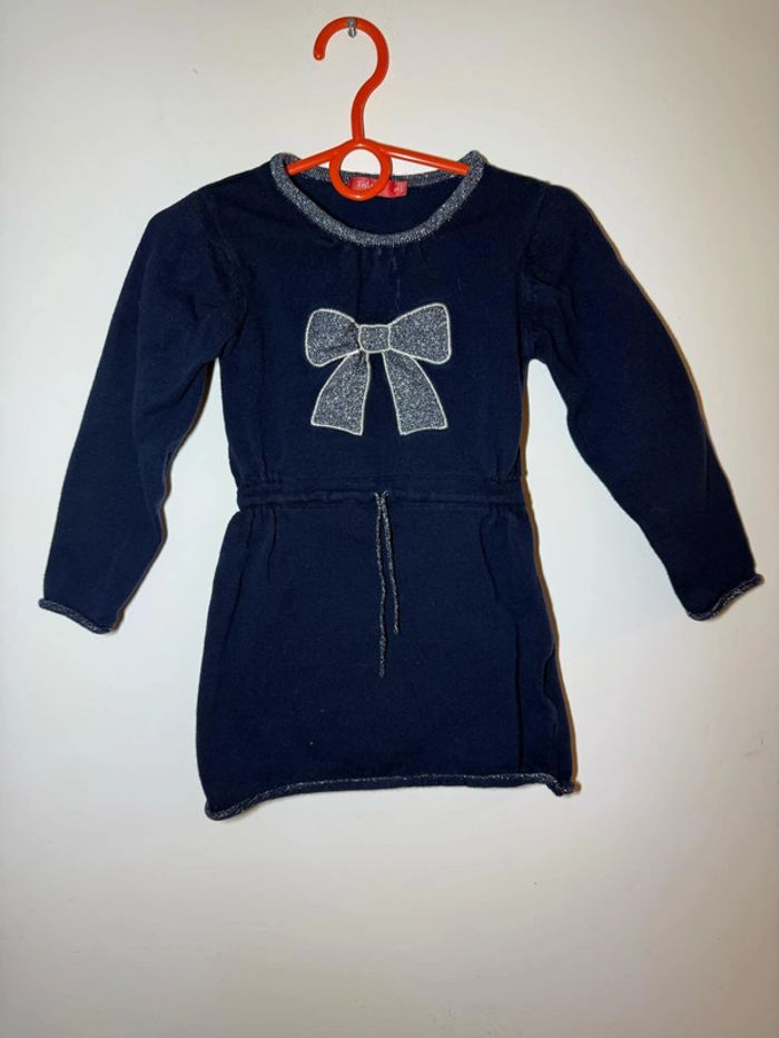 Robe fille 5 ans Tissaia - Bleu marine avec nœud pailleté - photo numéro 1
