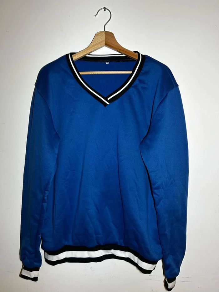 Sweat bleu col en V avec bordures contrastantes – Taille XL