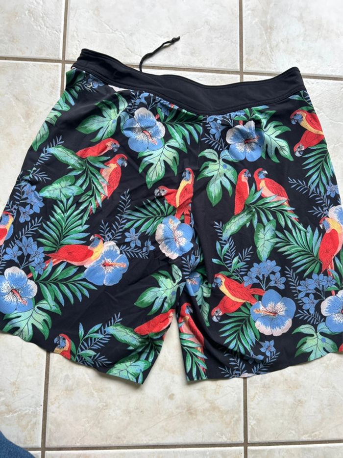 Jolie short de bain à motif fleuri de couleur rouge vert bleu et noir Taille 40 En très bon état #charlinehommeL N’hésitez pas si vous avez des questions