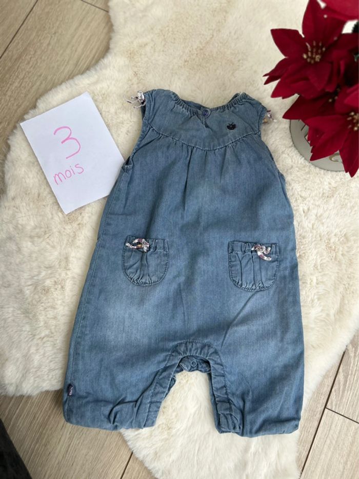 Jolie combinaison en jean avec petit détails sur les poches Taille 3 mois Marque obaibi En très bon état porté une fois #charlinelolfille3mois N’hésitiez pas si vous avez des questions