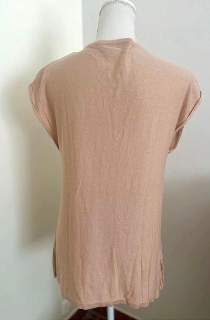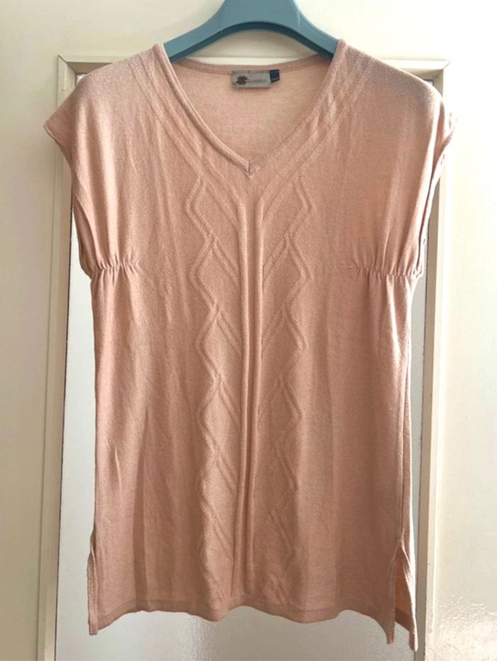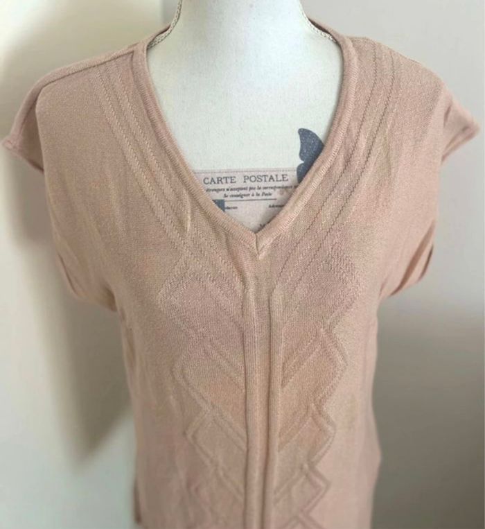 T-shirt, haut brodé Maille fine Agréable à porter ne tient pas chaud Marque Kiabi Taille 38 Coloris beige abricot 75% acrylique 25 % polyamide Maison non fumeur et sans animaux 📩Je réponds rapidement aux messages 📦Envoi rapide et soigné