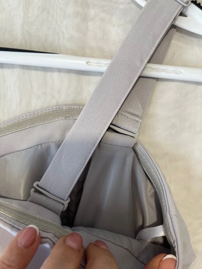 Robe de cérémonie Taille 38 Bustier avec bretelles amovibles réglables Couleur grise ou blanc cassé