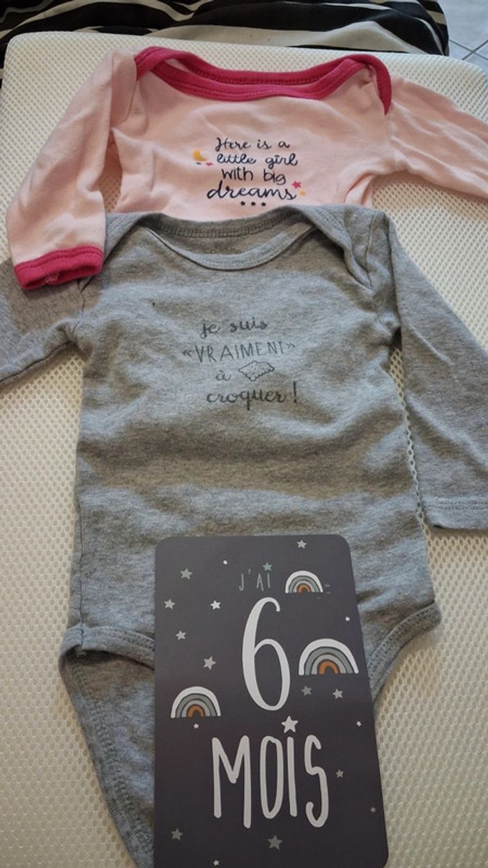 2 bodies manches longues 1 gris 3 pommes et 1 rose B&M