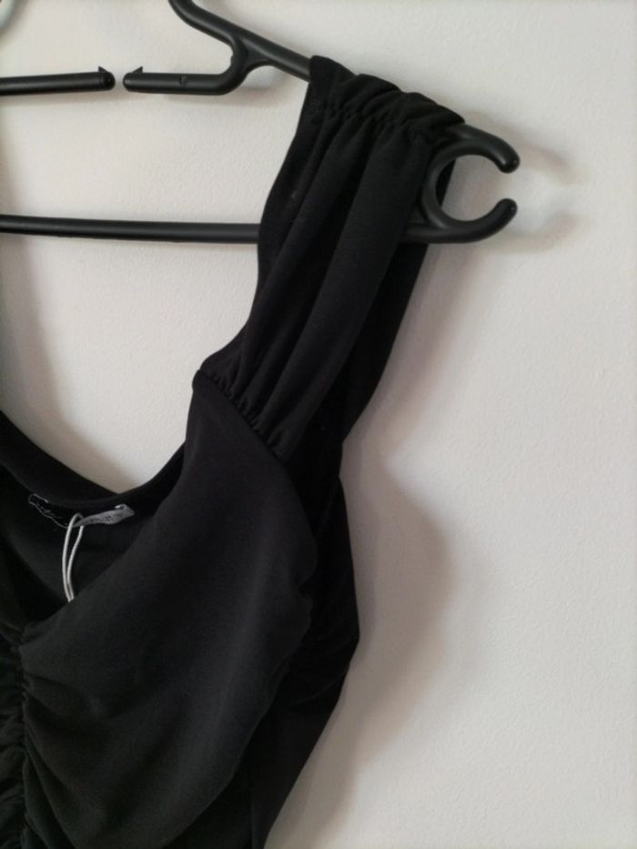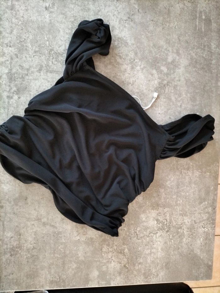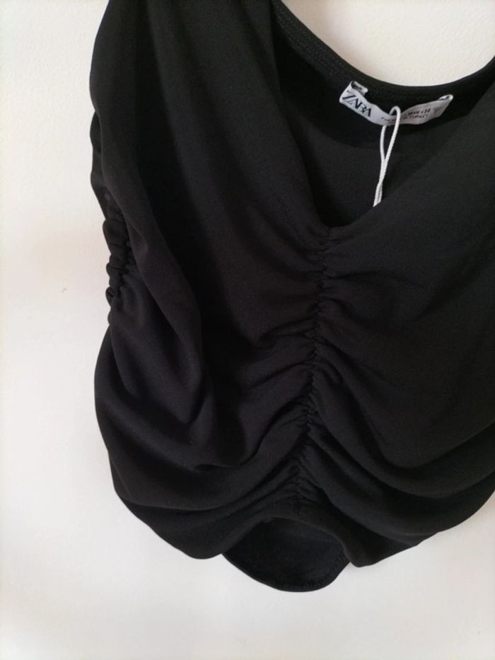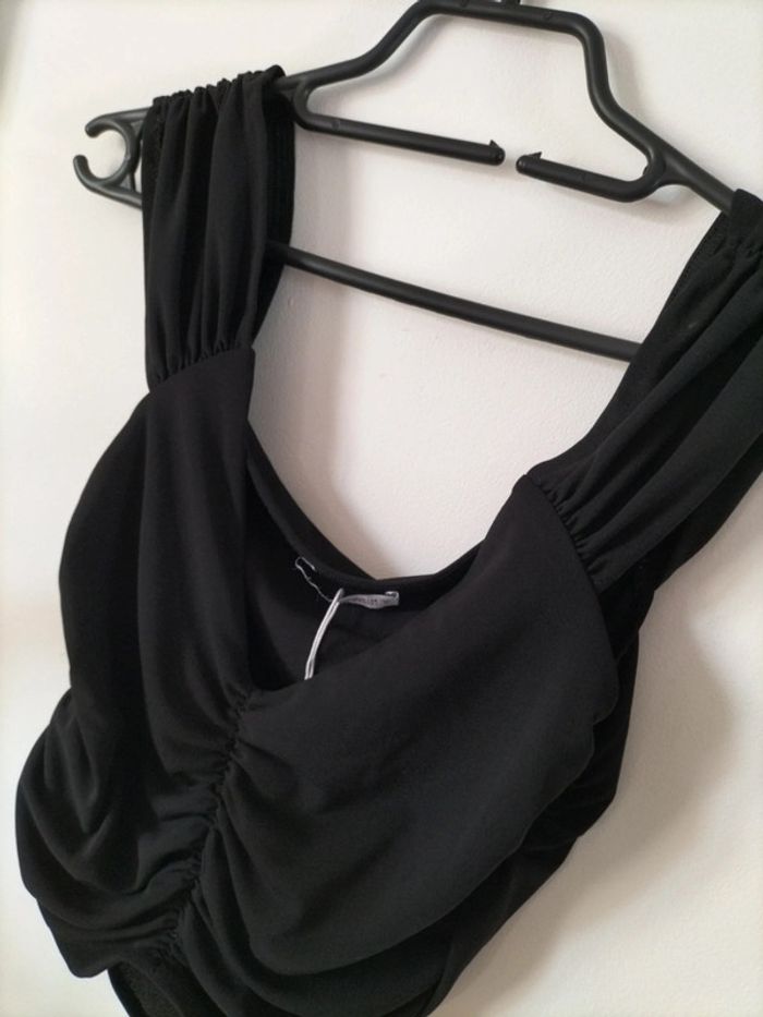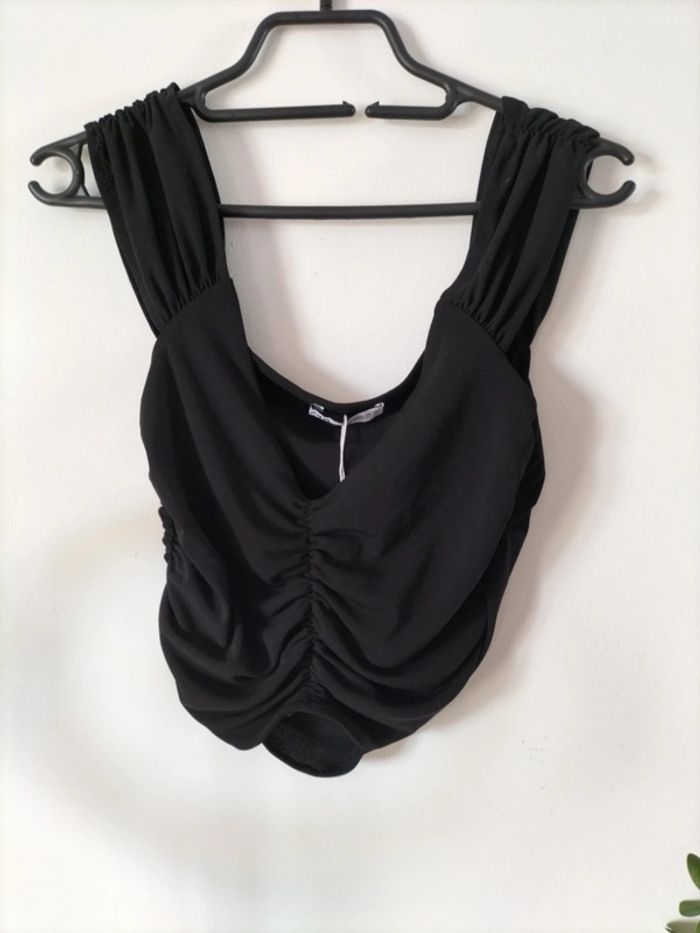 Top noir court ajusté avec des élastiques latéraux chic et intemporel, son design moderne qui donne un effet structuré et moderne. Convient pour un look cool ou chic. Taille petit #fanfanfemme38@fanfan35420