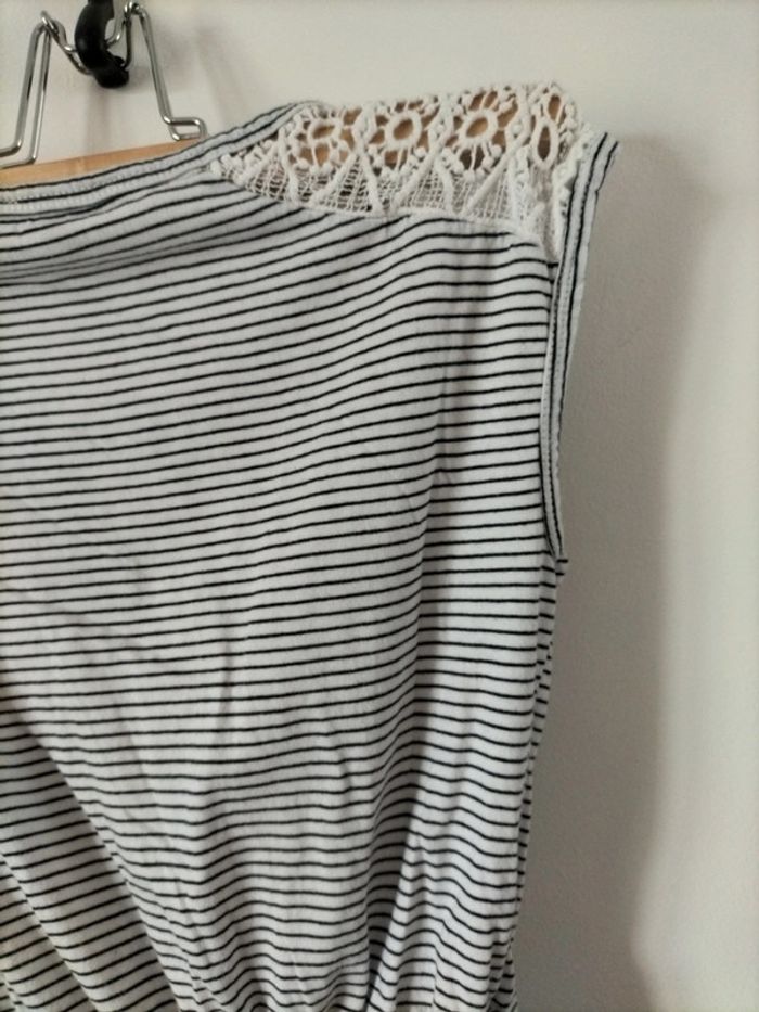 Robe en jersey de coton rayée bleue/Blanche sans manches avec de la dentelle sur les épaules . Élastique à la taille #fanfanfille12@fanfan35320