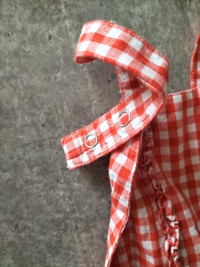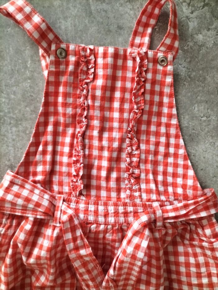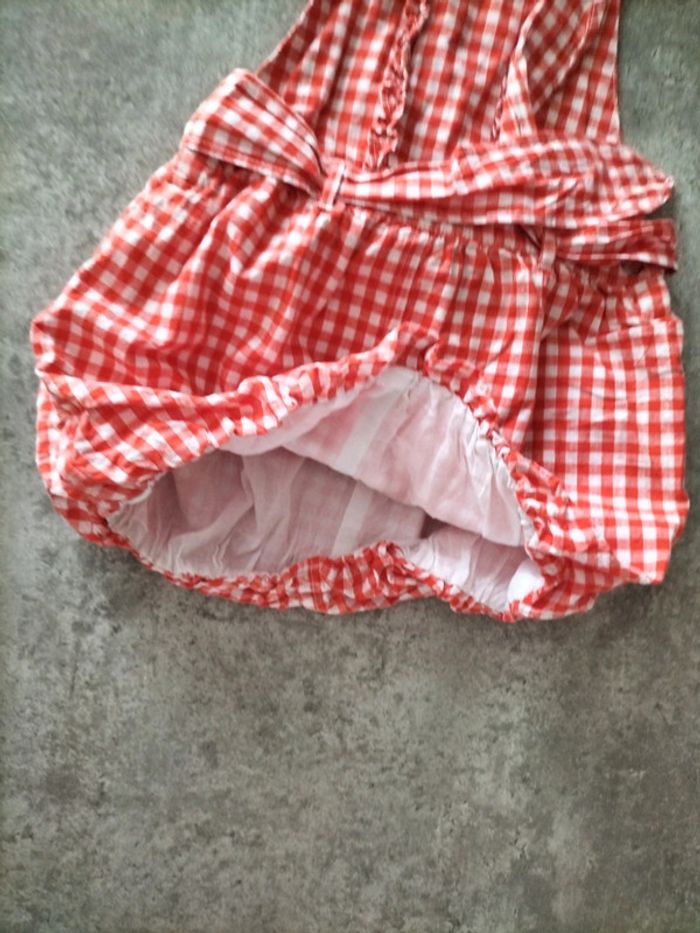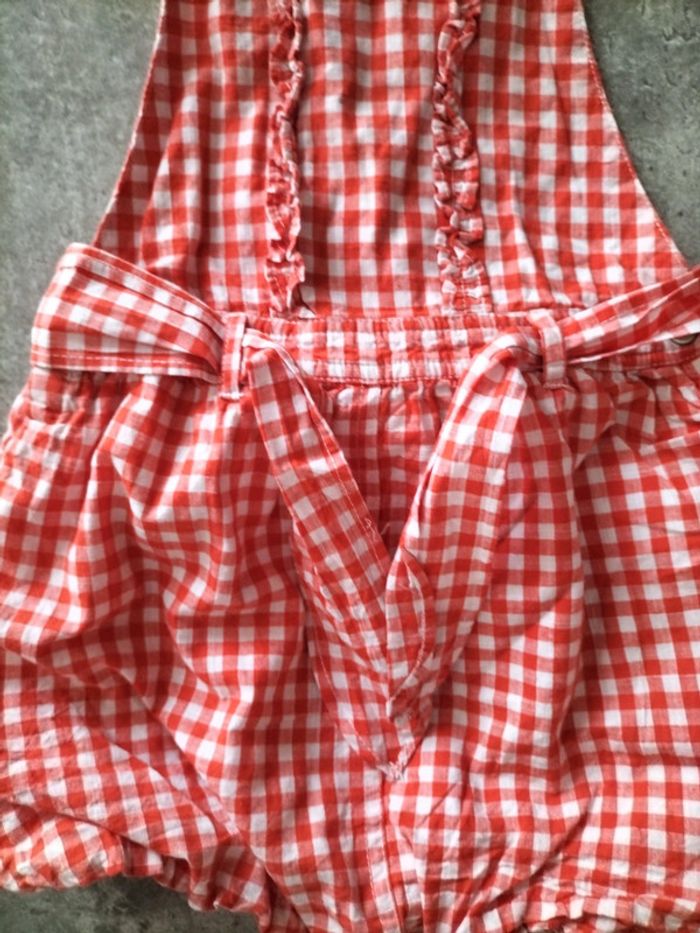 Jupe salopette doublée rouge a carreaux resserrer dans le bas par un élastique . Des bretelles réglables . Comme neuve #fanfanfille2@fanfan35320
