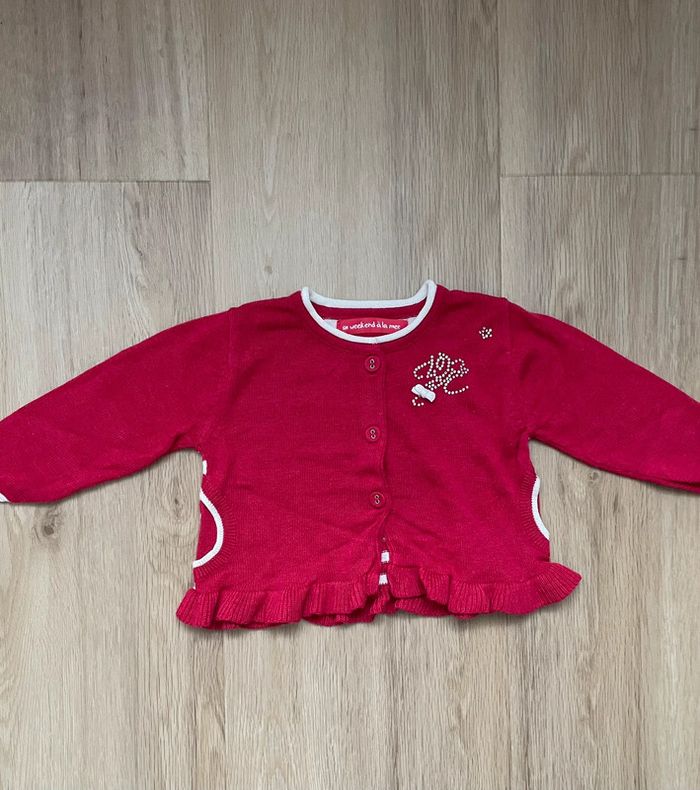 Gilet Week end à la mer rouge et blanc en excellent état, très peu porté, taille 6 mois