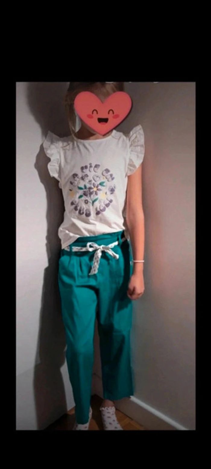 Thème "berlingo à Monaco " avec tee shirt motif fleurs en 10 ans, petite tâche cf photo, sinon reste en TB état + barrette assorti neuve #10ansfredlud73 #sergentmajorfredlud73