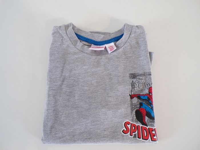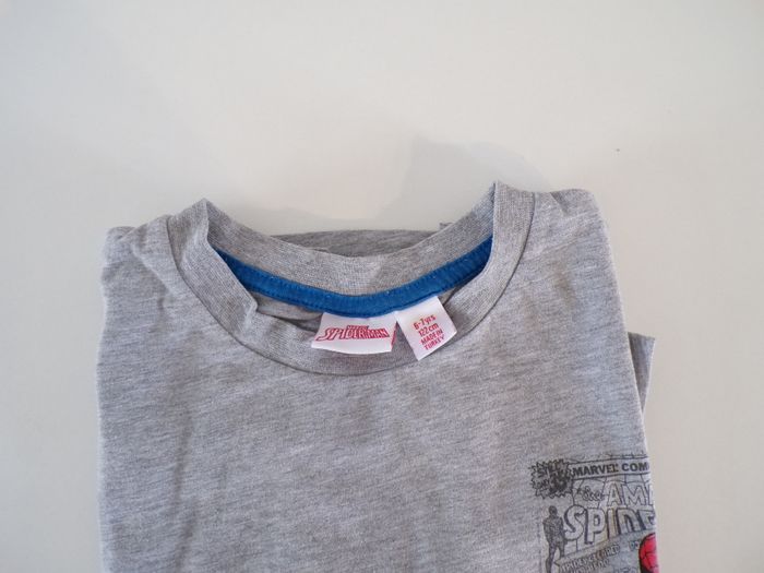 T-Shirt manches courtes - Spiderman 6/7 ans, tâché devant et derrière, les tâches peuvent surement partir avec du détachant.