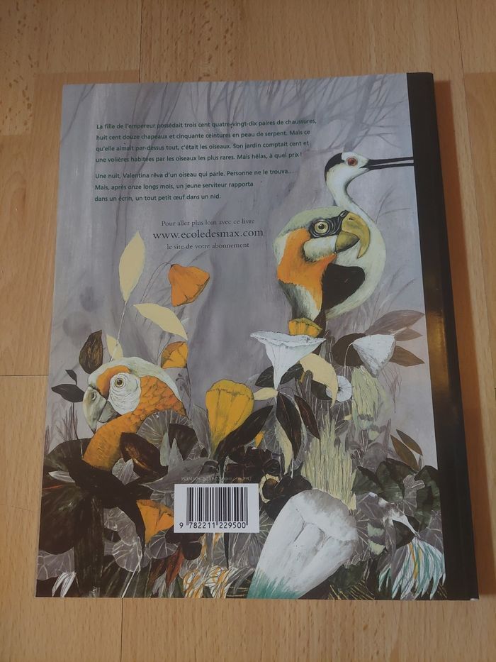 〰️ "La Volière dorée" ➡️Auteur: Anna Castagnoli ➡️Illustrateur: Carll Cneut ➡️Editeur: L'école des loisirs ➡️Novembre 2015 ➡️Album de 8 à 11 ans ➡️ISBN: 9782211223751 ➡️La fille de l'empereur possédait trois cent quatre-vingt-dix paires de chaussures, huit cent douze chapeaux, cinquante ceintures en queue de serpent. Mais ce qu'elle aimait par-dessus tout, c'était les oiseaux. Son jardin comptait cent et une volières habitées par les oiseaux les plus rares. Mais hélas! Combien de têtes avaient-elles coûté, de combien de serviteurs! Jusqu'à la nuit où Valentina rêva de l'oiseau qui parle. Personne ne le trouva. Puis, après onze longs mois, un jeune serviteur rapporta dans un écrin un tout petit oeuf dans un nid... 🌸 Etat: BE (lu qu'une fois, juste trace de l'étiquette du prénom de ma fille qui a été enlevée à l'arrière du livre, se voit qu'à la lumière) 🌸 Marque : L'école des loisirs 🌸 Age : 8 à 11 ans 🏷 Les réductions sur les lots sont activées ⏳️ Pas de réservation ✂️ Les colis sont soigneusement emballés 🎁 Un petit cadeau sera mis dans chaque colis #virginie63zlivre