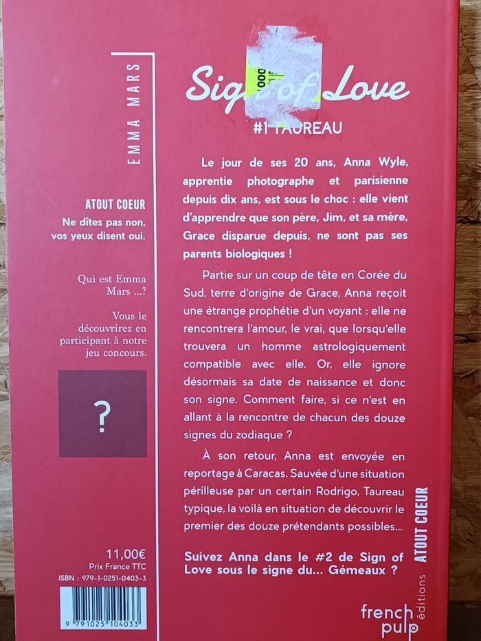 NEUF Livre Sign Of Love " Taureau" de EMMA MARS Le prix est pour un