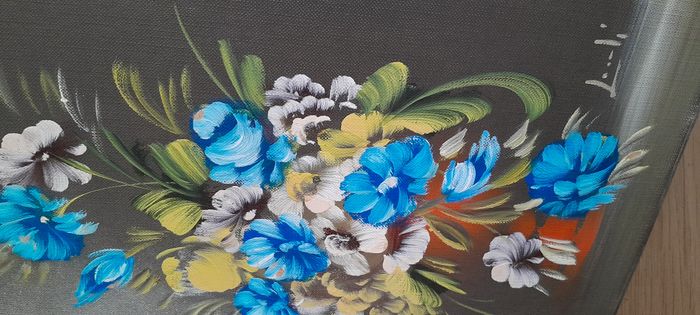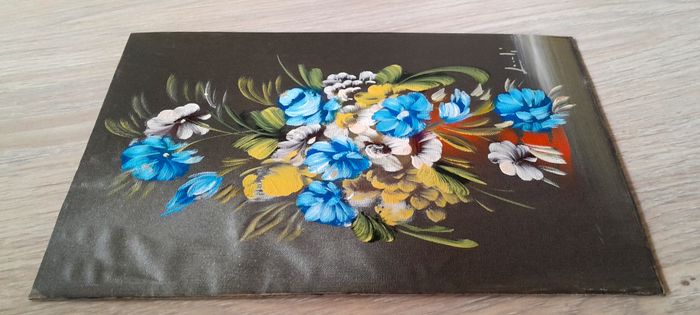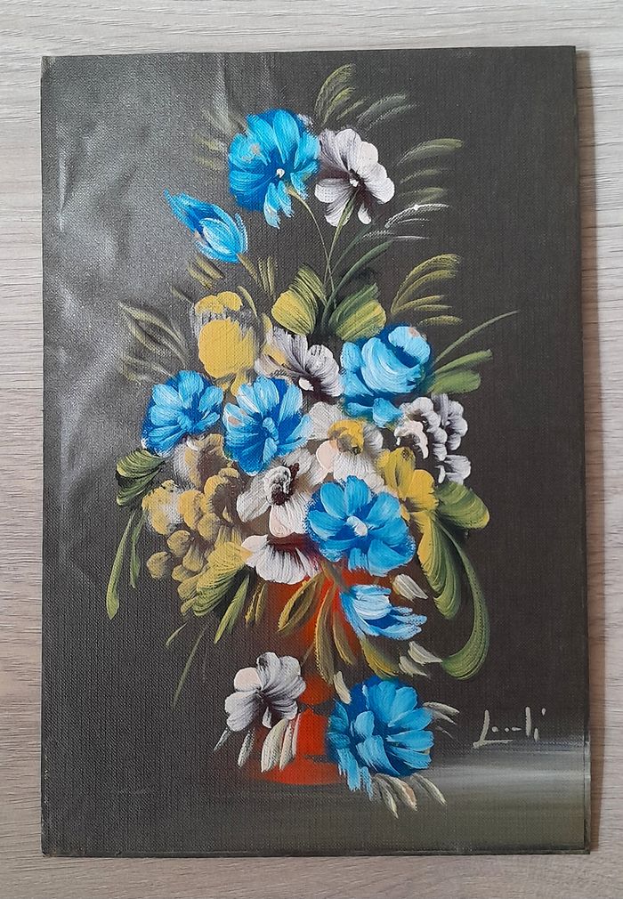 Peinture sur toile contrecollée sur carton motif floral - photo numéro 1