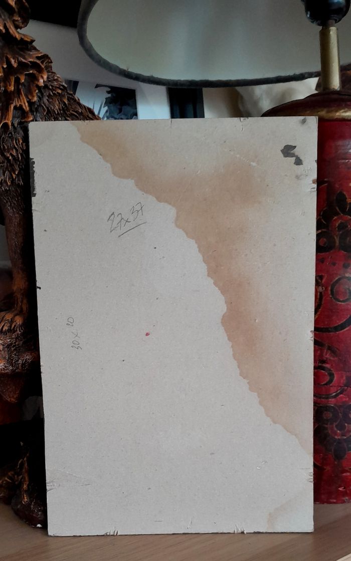 Peinture sur toile contrecollée sur carton motif floral