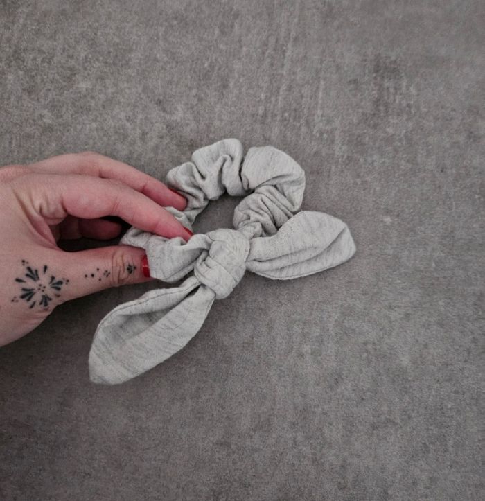 Scrunchie noeud gris Très bon état Peu utilisé Sans marque Matière tissu Accessoire cheveux Élastique à cheveux Chouchou Envol soigné