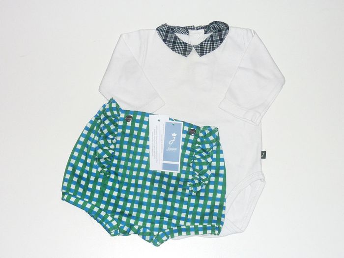 Autres annonces dans cette taille: #karinelillegarcon3mois Bloomer neuf avec étiquette de marque JACADI, volanté, imprimé vichy vert et bleu, ceinture ajustable, en coton organique, orné de jolis boutons, associé au body de marque JACADI blanc orné de la traditionnelle broderie JACADI et du col chic à carreaux.