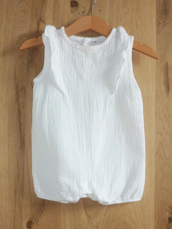 Pour voir mes annonces dans cette taille, tapez: #karinelillefille6mois #karinelillegarcon6mois 🌿Faites des lots 🌿 Barboteuse volantée en gaze de coton en très bon état, couleur neige. Modèle mixte.