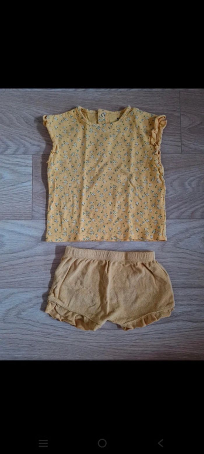 T-shirt+ short ensemble été jaune fleurs 18 mois
