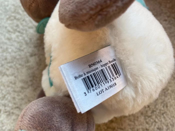 Doudou boîte à musique hippo bazile 🍁 - photo numéro 1