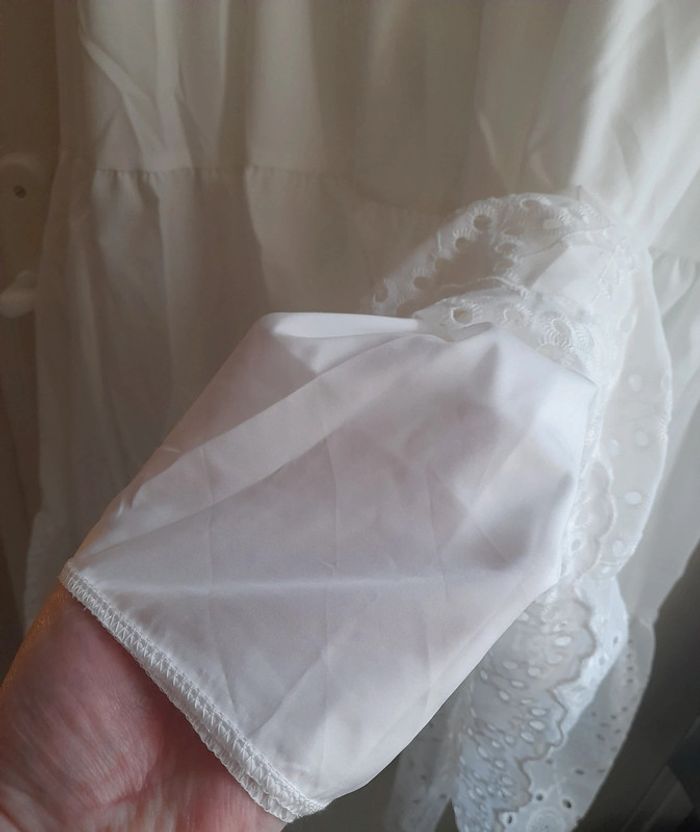 Robe longue blanche avec doublure Manches et bas de la robe avec de la broderie anglaise Élastique en dessous de la poitrine Taille 2XL 46/48 Neuve #rachel62500femme4648