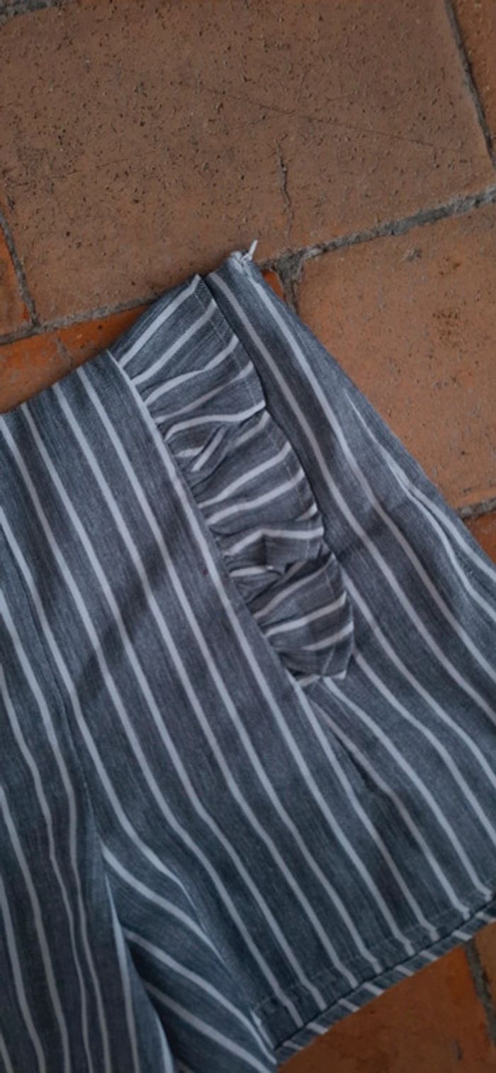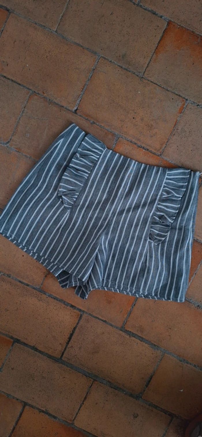 Ce short à rayures verticales allonge joliment la silhouette et apporte une touche rétro-chic à toutes tes tenues d’été.