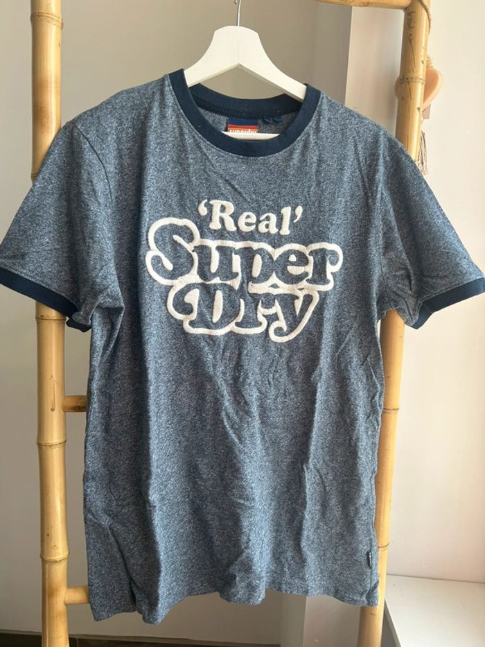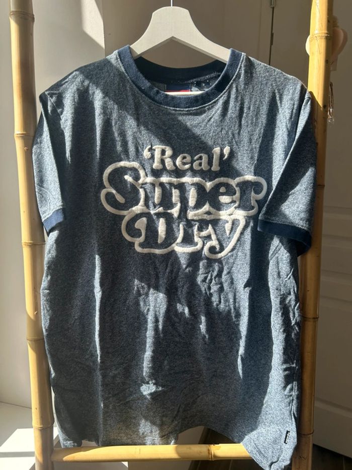 T shirt homme couleur bleu avec écriture Taille M Superdry En très bon état