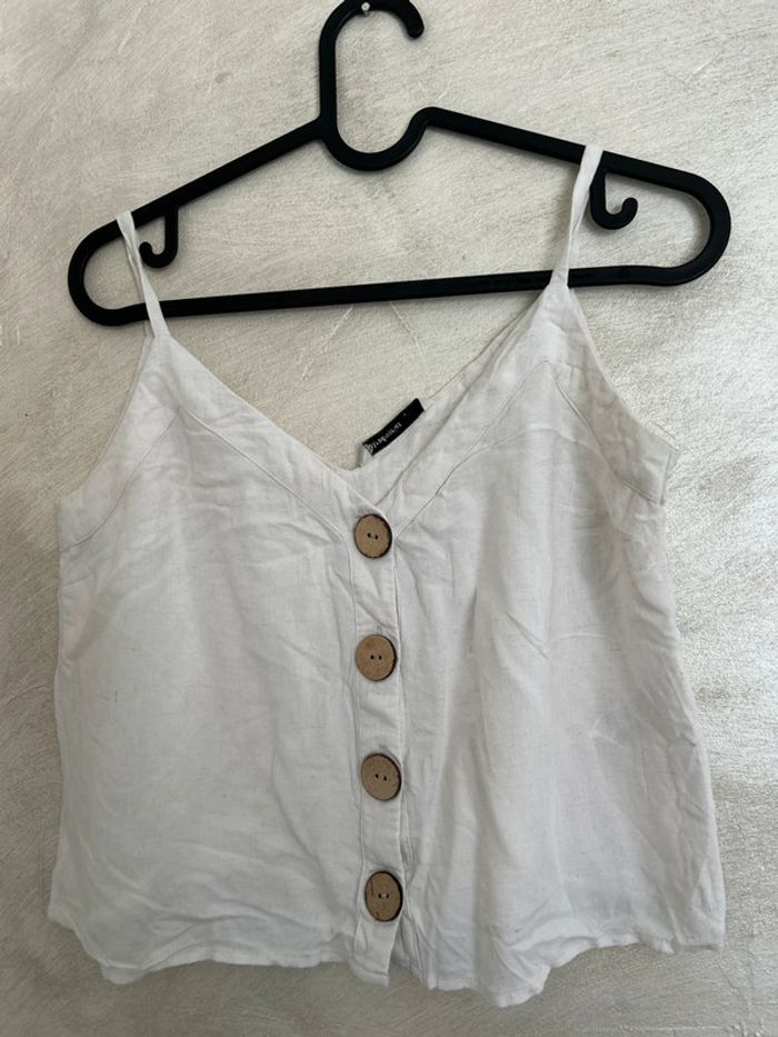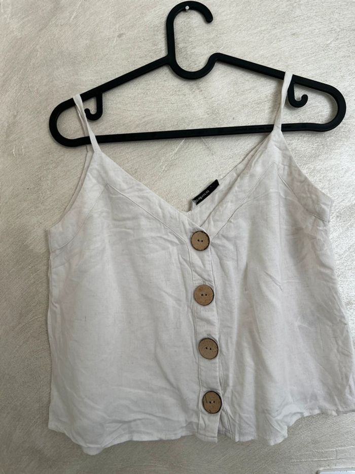 Top De la marque stradivarius De couleur beige Bouton de décoration sur le devant Taille S En très bon état Box 6