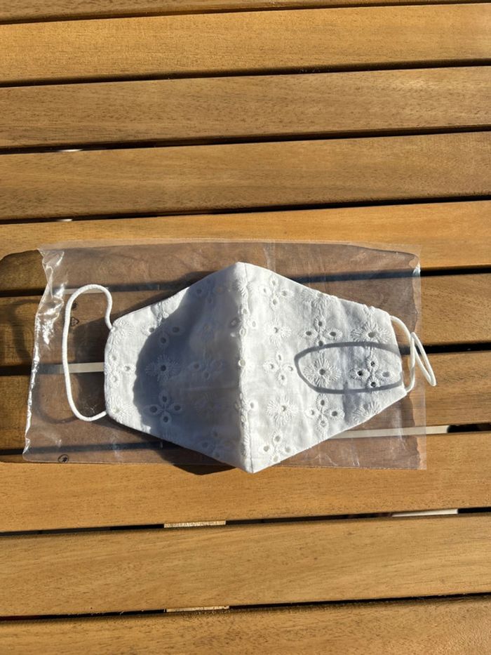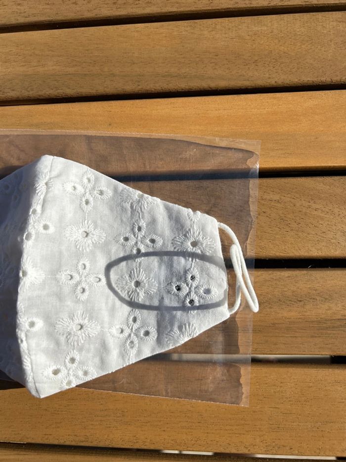 Masque en tissus brodés blanc neuf - photo numéro 1