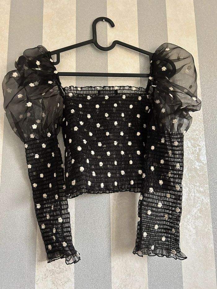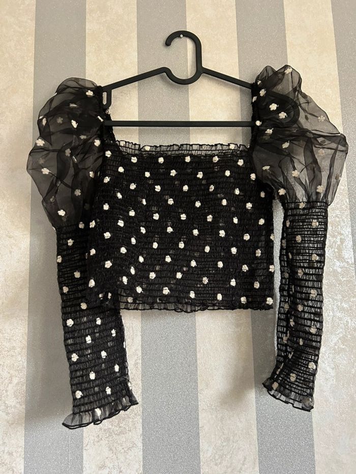 Top chic noir à fleur blanche Taille S De chez Bershka Neuf sans étiquettes Box2