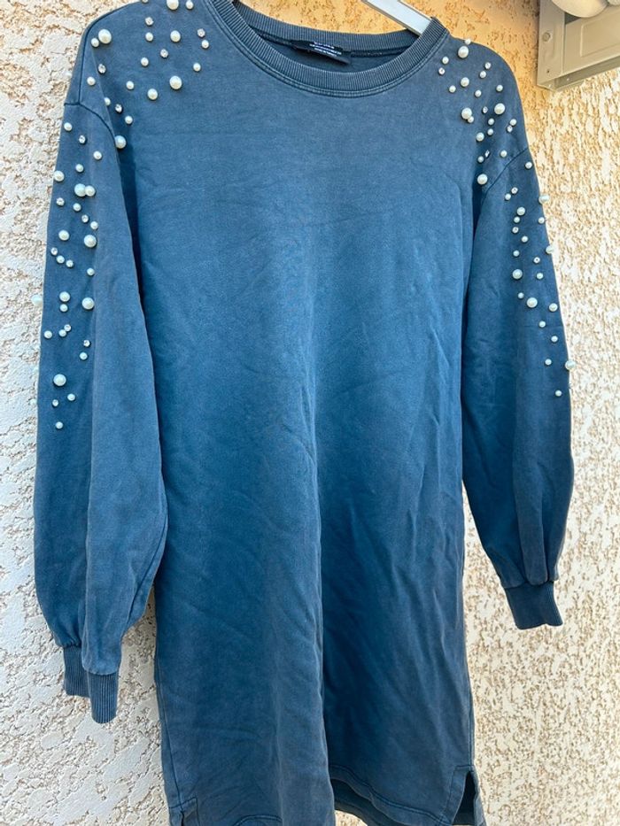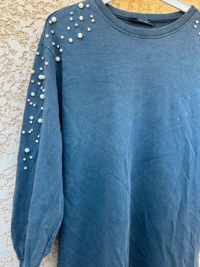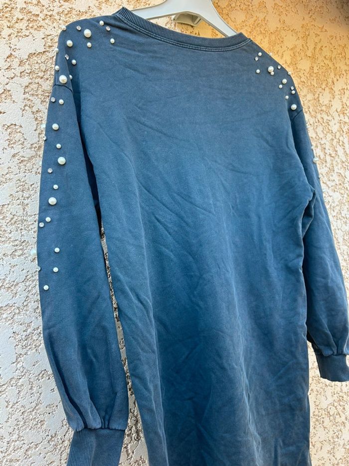 Robe pull grise foncé Détails de perle et diamant sur les manches Marque bershka En très bon état Taille xs/34 B5