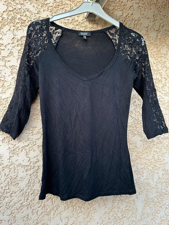 Débardeur noir bershka Détails dentelle sur les manches Taille M En bon état quelques bouloches Caisse B
