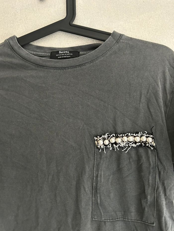 Tee shirt uni gris Bershka taille XS En très bon état Détail de perle sur la poche B4