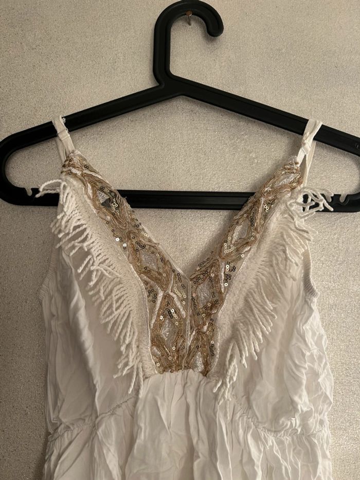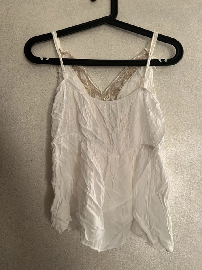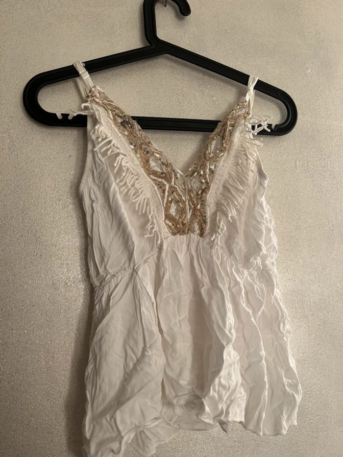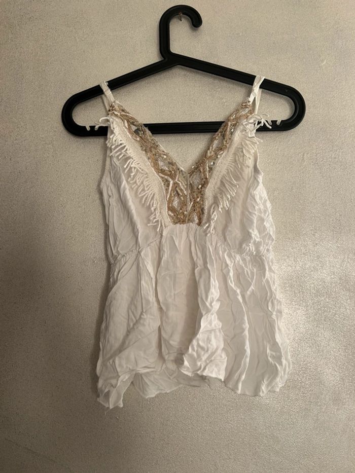 Tee shirt blanc bohème Taille unique Bretelles réglables En très bon état Caisse D