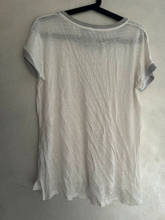 Débardeur Captain tortue blanc Taille 1 Col rond gris avec bandes de perles sur le devant En très bon état Caisse D
