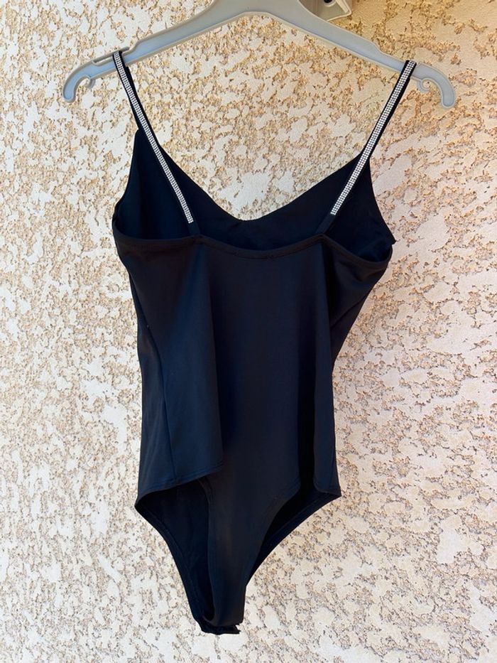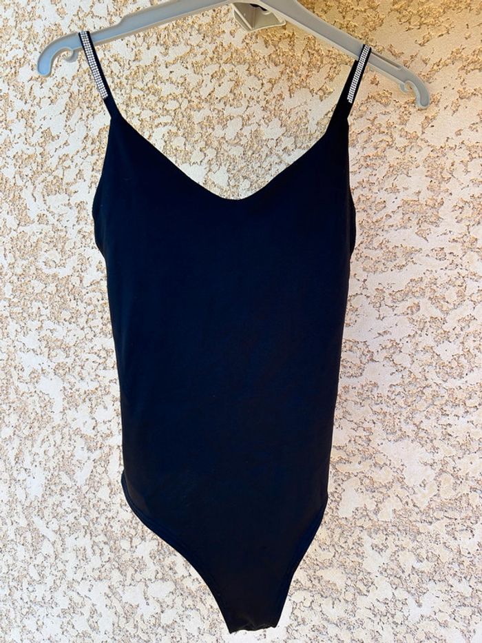 Body noir taille s Il y a des strass sur les épaules (manque 1 strass à droite) En très bon état B3