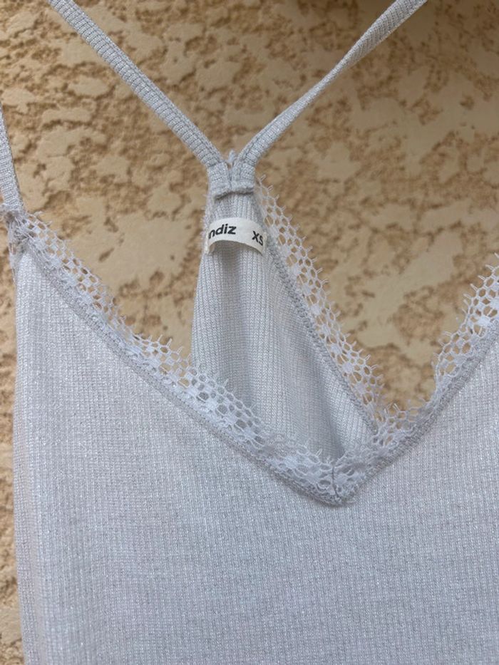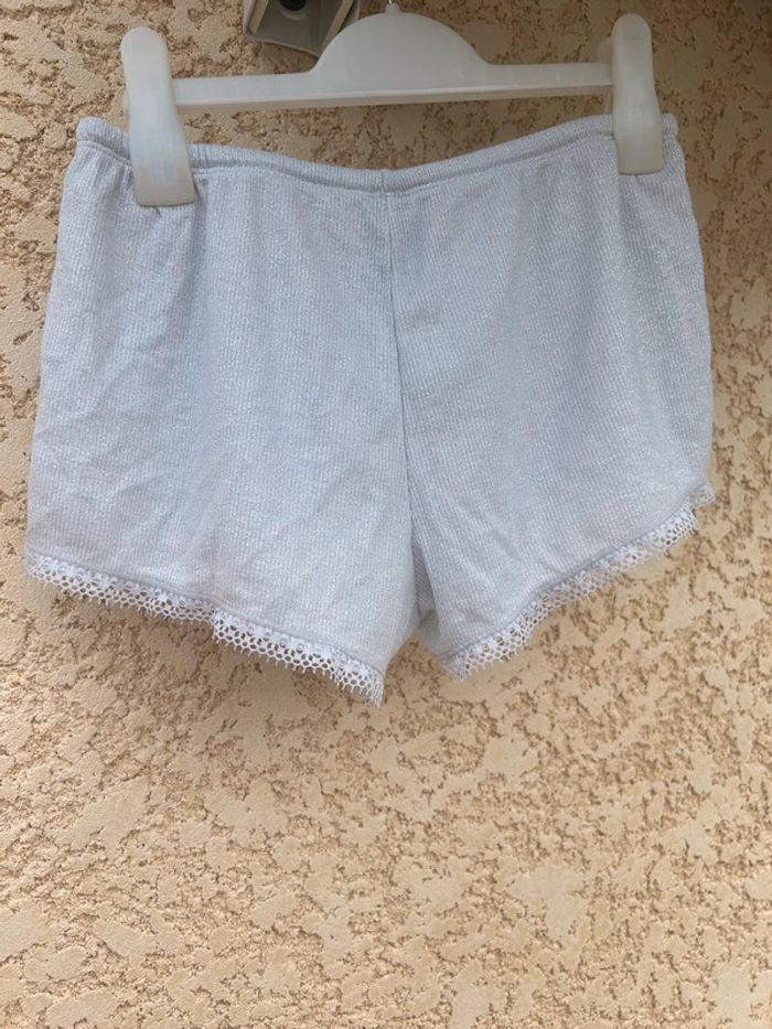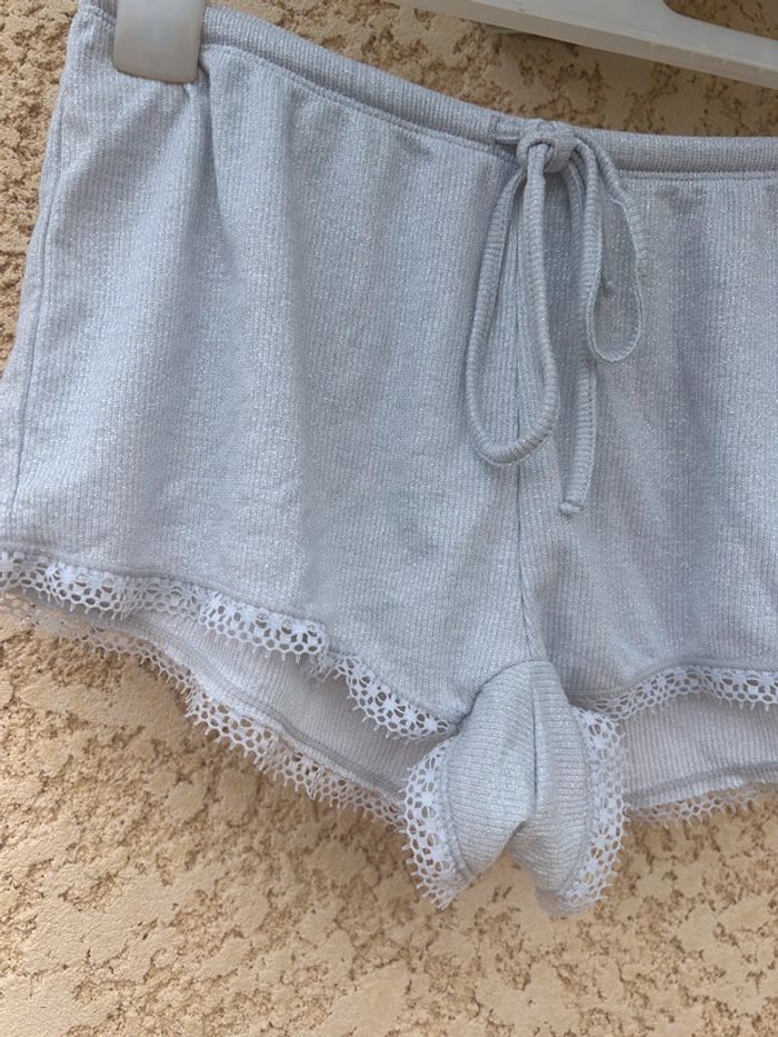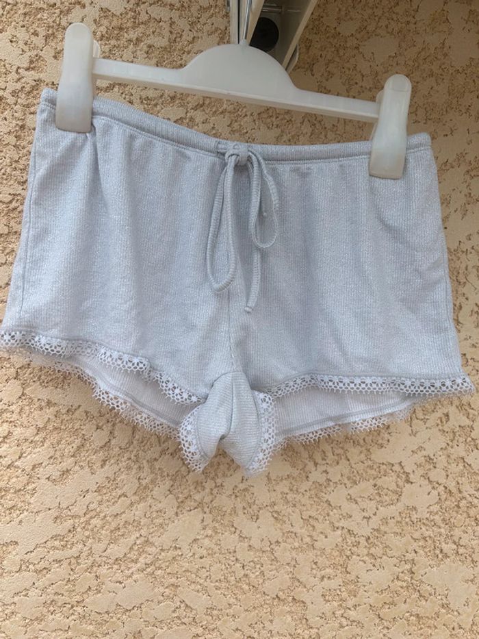 Pyjama undiz Couleur argenté Short et tee shirt avec détail de dentelle Haut et bas taille xs En très bon état CaisseA