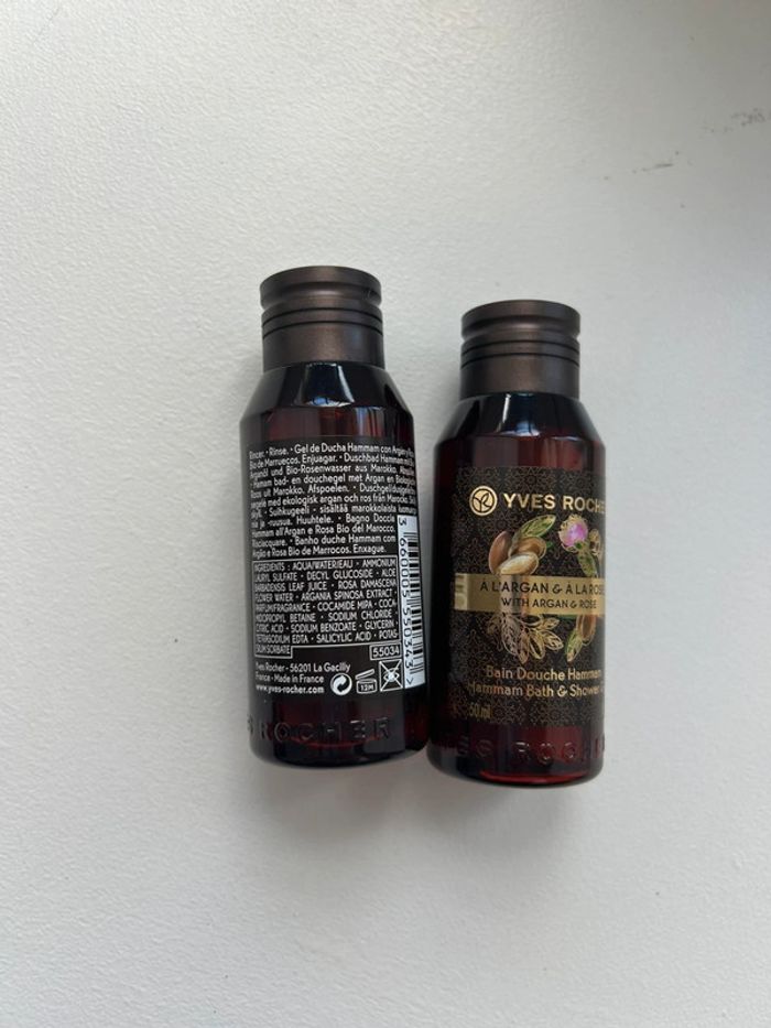 Lot de deux bains douches Yves rocher Neuf À l’argan et à la rose 2x50 ml