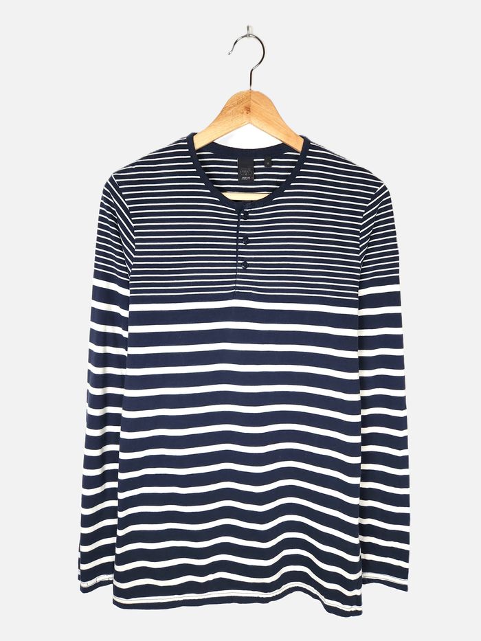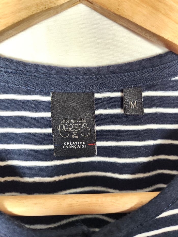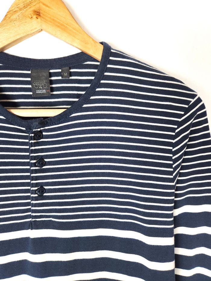 Le Temps des Cerises T-shirt Henley Homme Rayé Bleu Marine Blanc Coton Taille M