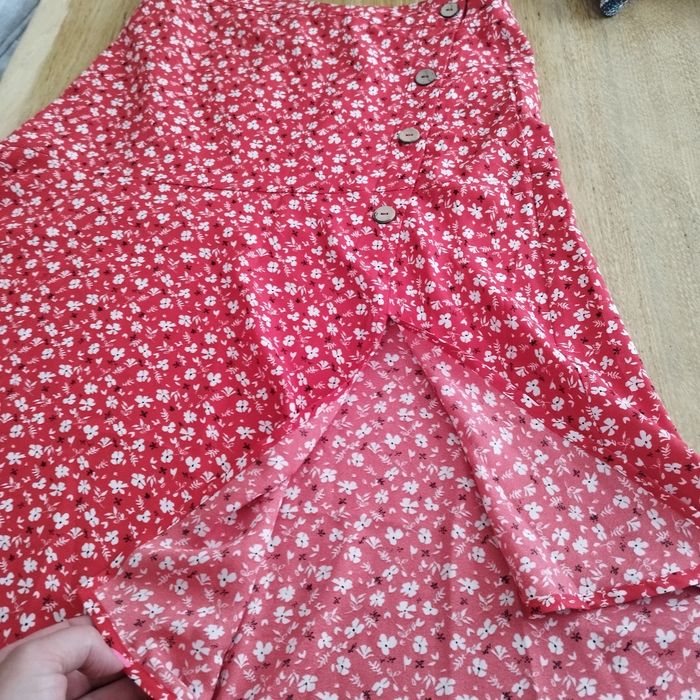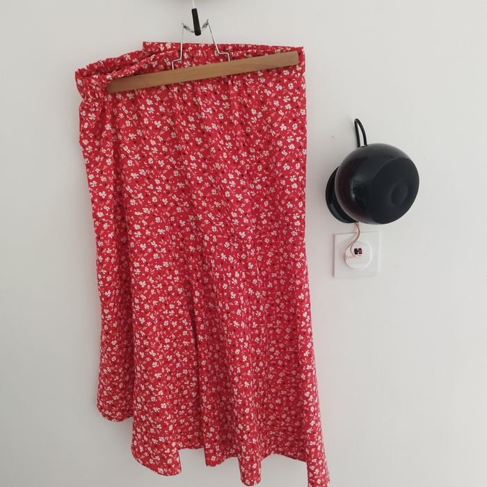 Jolie jupe asymétrique très agréable à porter le petit plus pas besoin de repassage. Elle est fendue à mi cuisses.