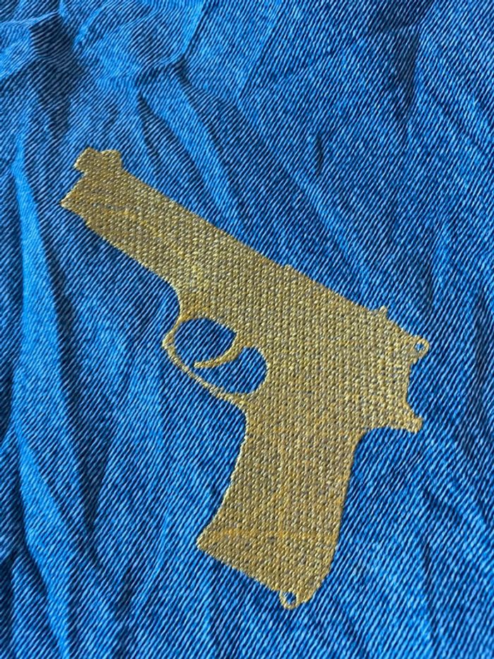 Jort baggy large brodé doré gangster handmade streetwear hip-hop y2k skater taille 36US - photo numéro 8