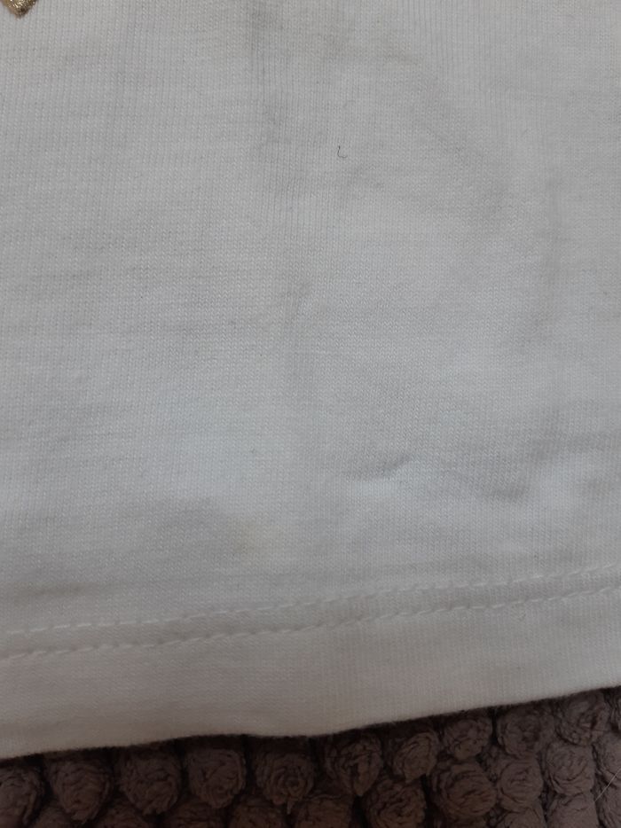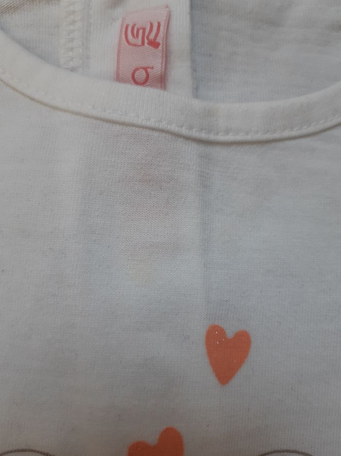 En bon état, un petit peu tâché au au dessous du col et en bas du T-shirt. Mais ne ressort pas trop.
