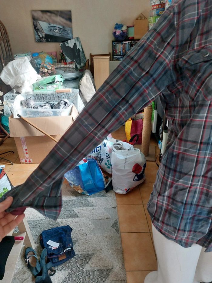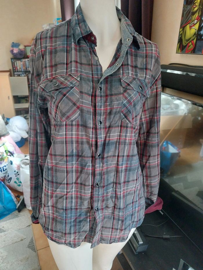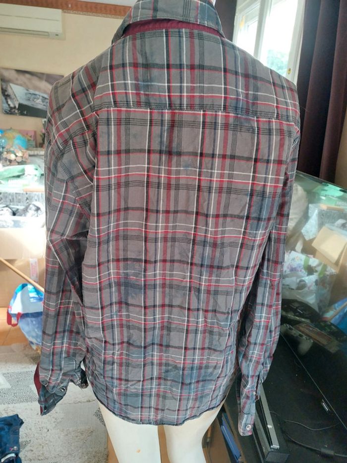 Chemise à carreaux Gris (les tâches font parti du tissu de la chemise)