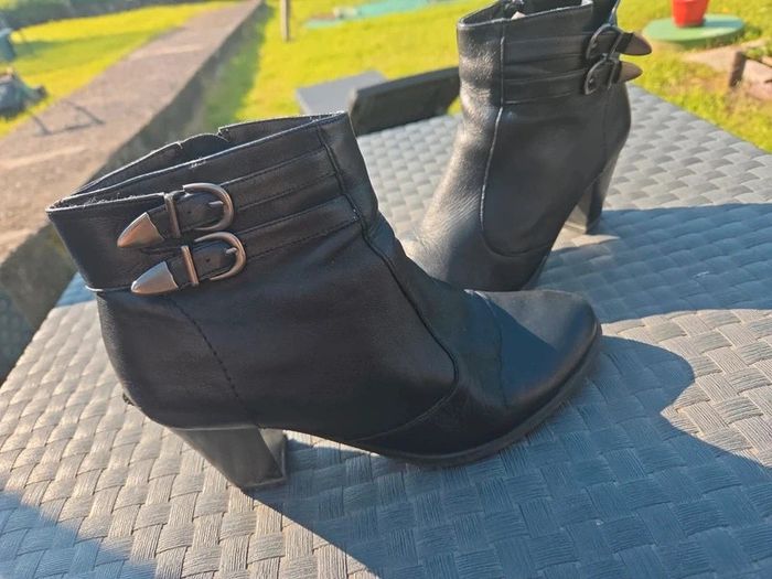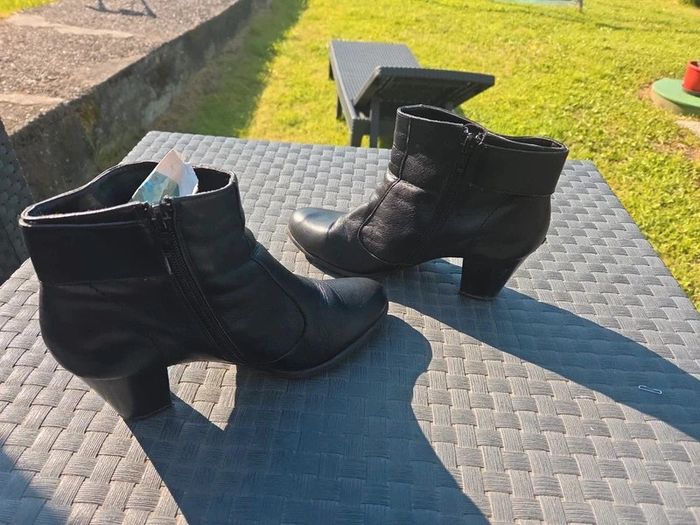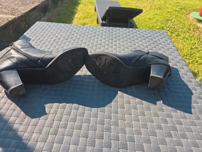 Bottines mi saison basse cuir noir cuir au talon arrière use sur une seule bottines Achetées chez Besson