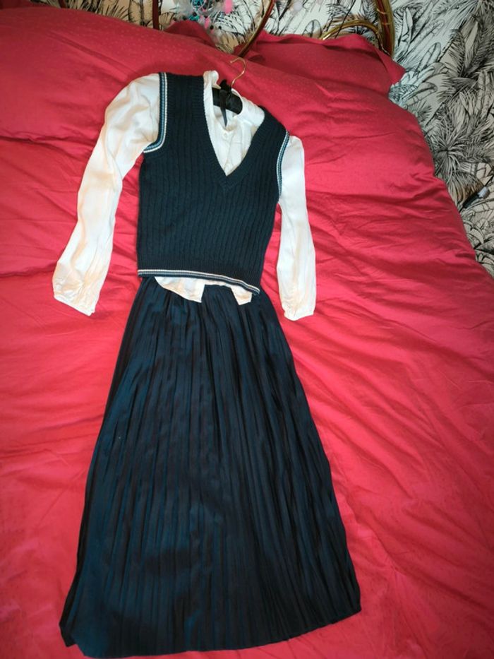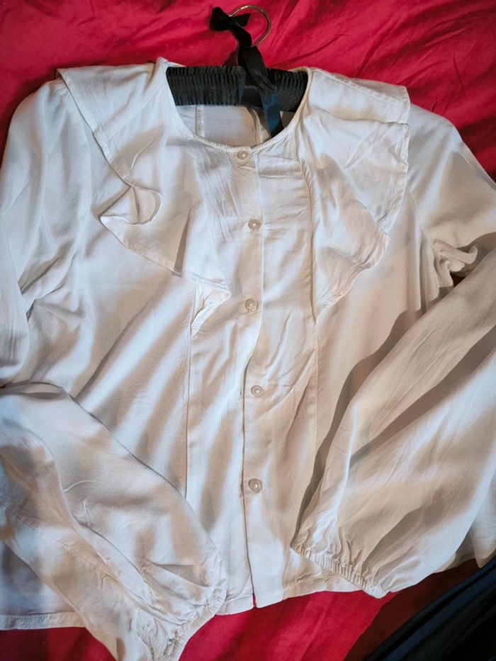 XXS JUPE NEUVE SANS ÉTIQUETTE PULL SANS MANCHES PORTÉ UNE FOIS COMME NEUF CHEMISIER BLANC À VOLANTS TRES BON ÉTAT