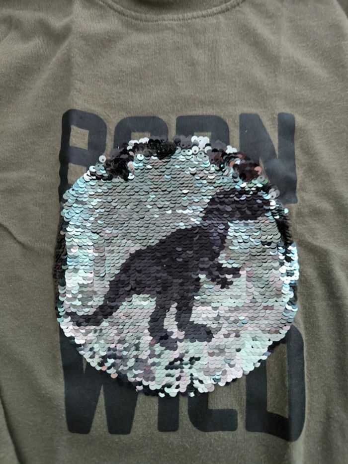 T-shirt kaki dinausore T Rex avec sequins